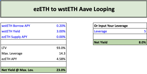 a. ezETH 到 wstETH 的 Aave 循环借贷: